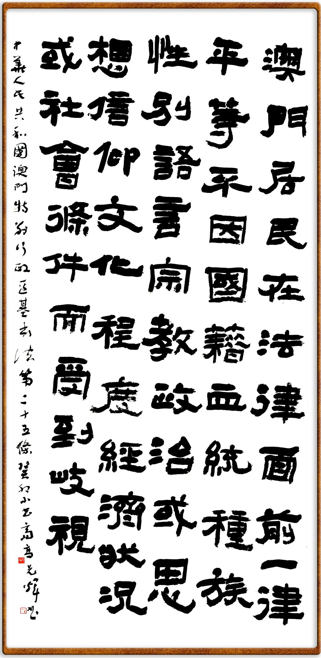 澳門基本法第二十五條 澳門居民在法律面前一律平等,不因國籍、血統(tǒng)、種族、性別、語言、宗教、政治或思想信仰、文化程度、經濟狀況或社會條件而受到歧視。