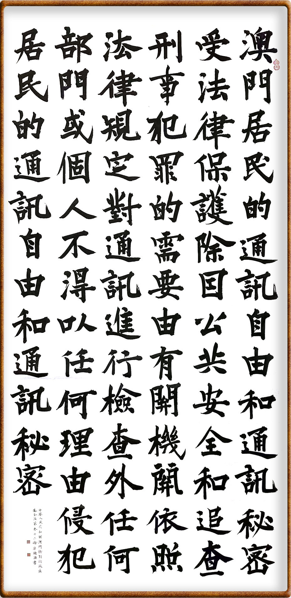 澳門基本法第三十二條 澳門居民的通訊自由和通訊秘密受法律保護。除因公共安全和追查刑事犯罪的需要,由有關機關依照法律規(guī)定對通訊進行檢查外,任何部門或個人不得以任何理由侵犯居民的通訊自由和通訊秘密。