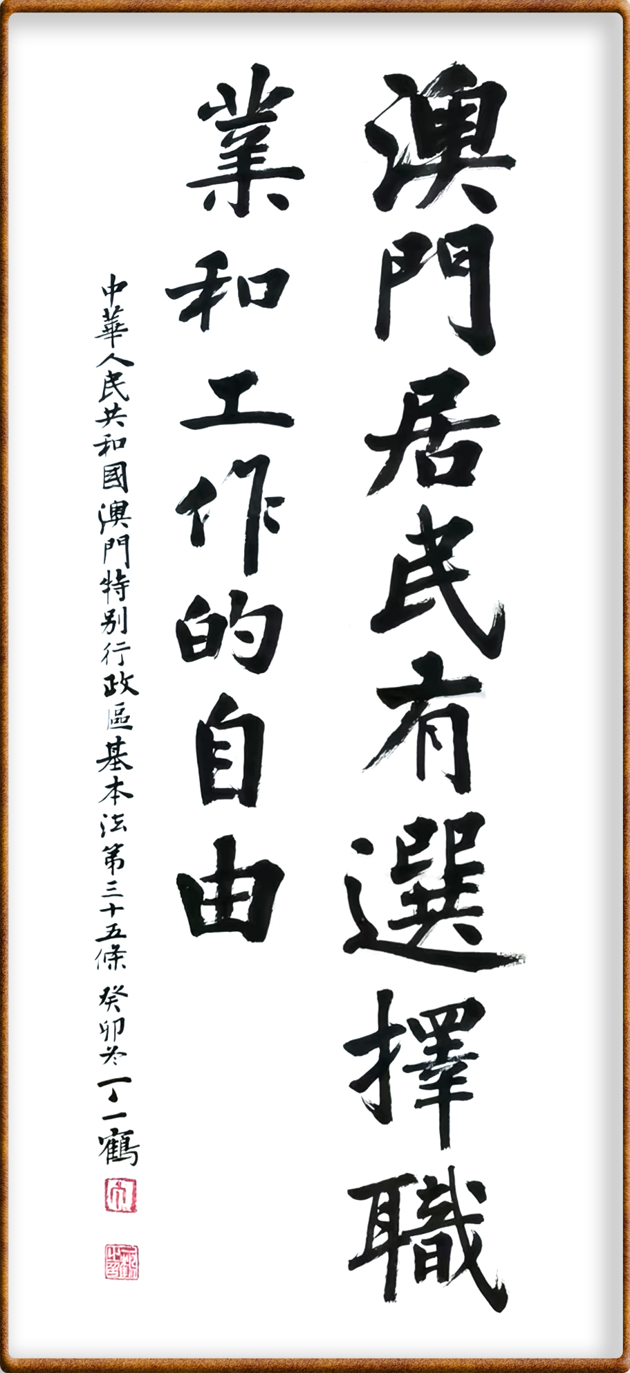 澳門(mén)基本法第三十五條 澳門(mén)居民有選擇職業(yè)和工作的自由。