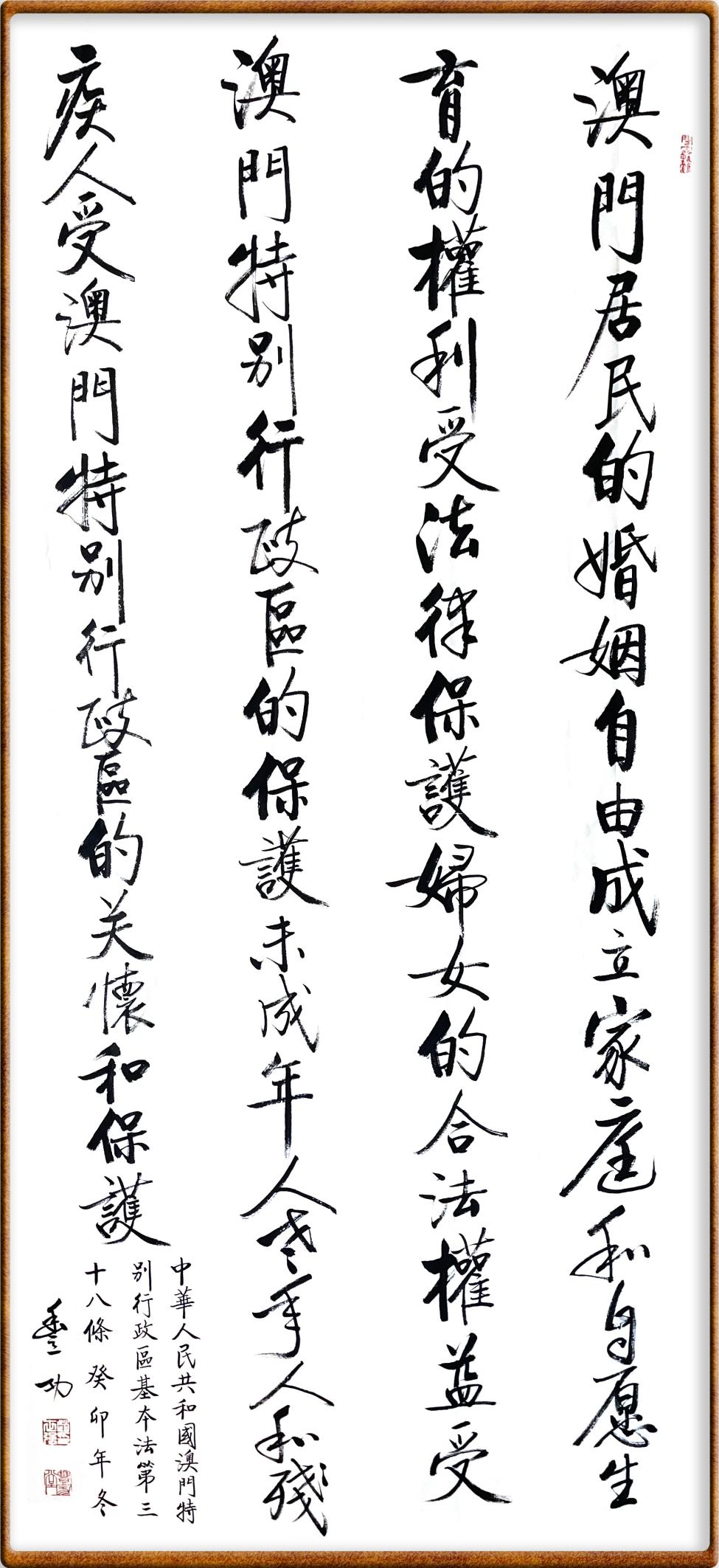 澳門基本法第三十八條 澳門居民的婚姻自由、成立家庭和自愿生育的權利受法律保護。