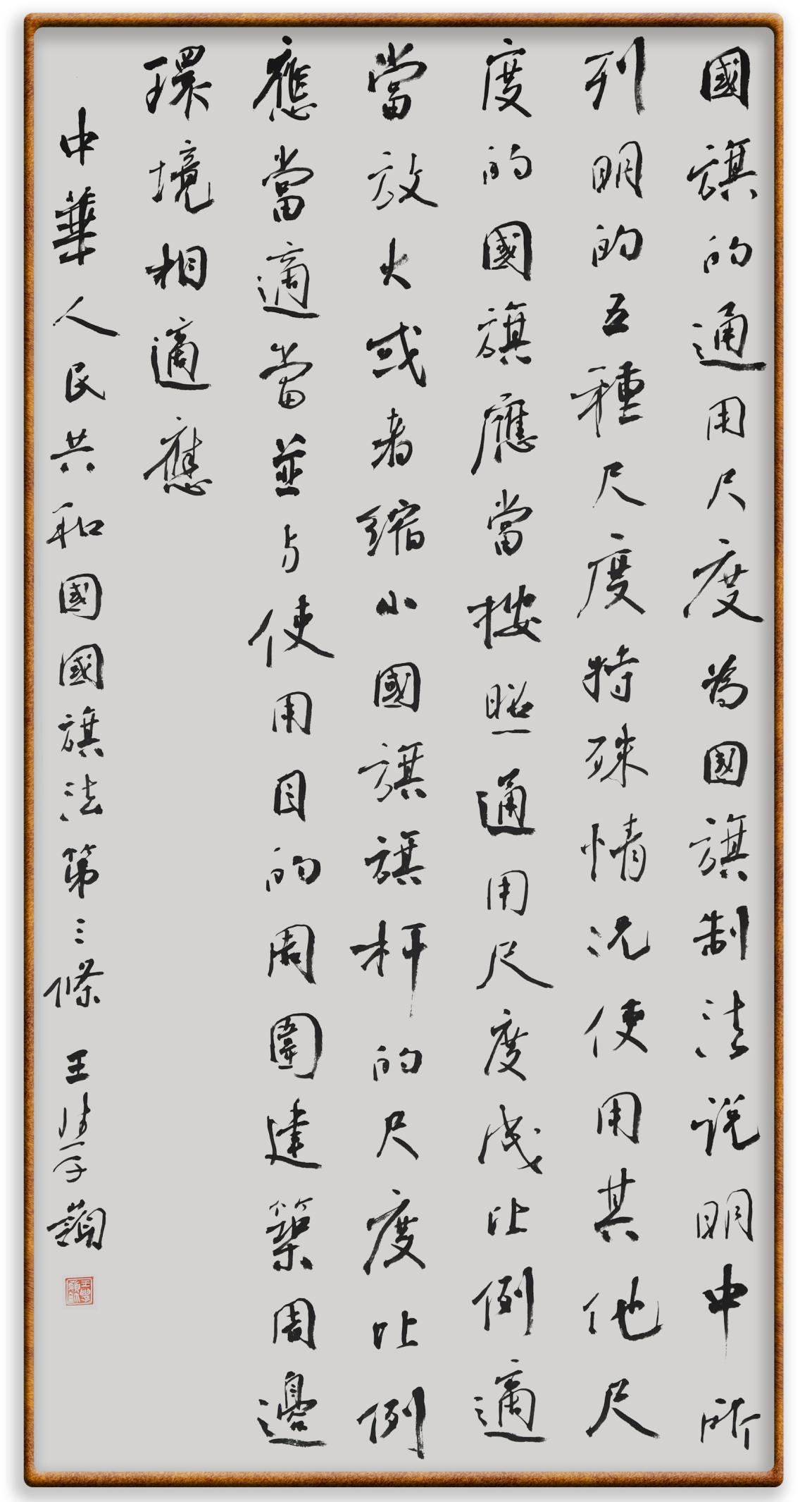 國(guó)旗法第三條 國(guó)旗的通用尺度為國(guó)旗制法說(shuō)明中所列明的五種尺度。特殊情況使用其他尺度的國(guó)旗,應(yīng)當(dāng)按照通用尺度成比例適當(dāng)放大或者縮小。