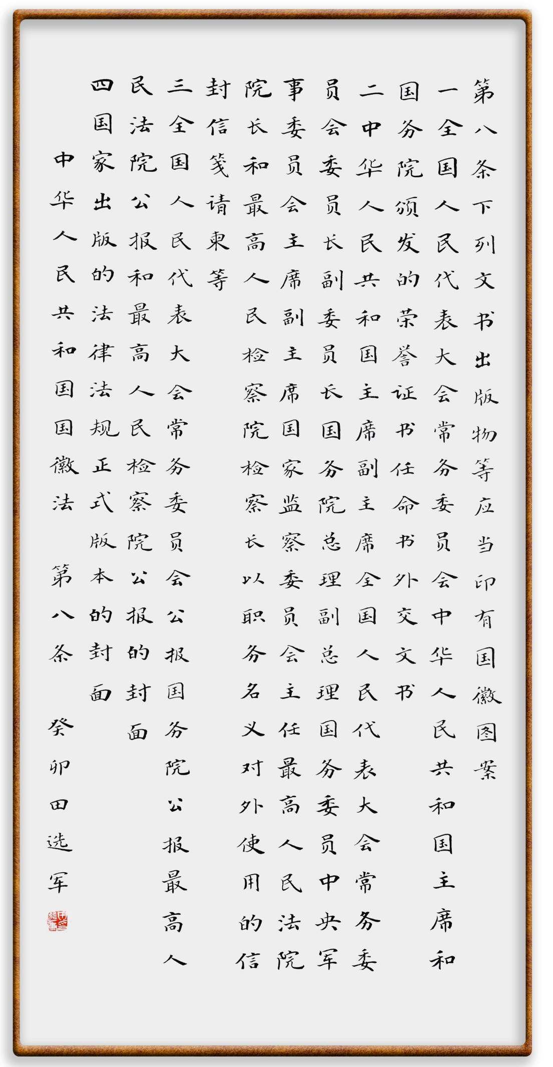 國徽法第八條 下列文書、出版物等應當印有國徽圖案:
