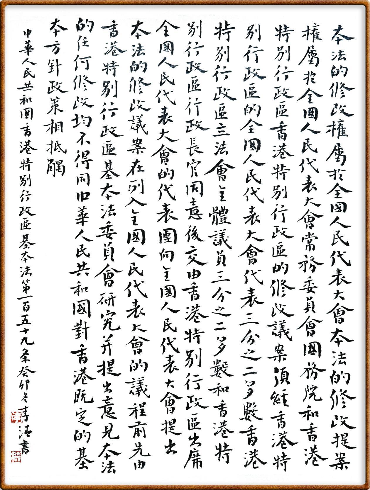 香港基本法第一百五十九條 本法的修改權(quán)屬于全國(guó)人民代表大會(huì)。