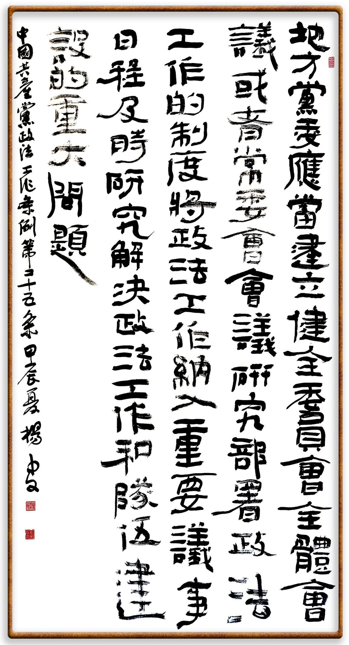 《中國(guó)共產(chǎn)黨政法工作條例》對(duì)黨領(lǐng)導(dǎo)新時(shí)代政法工作進(jìn)行全面制度擘畫(huà),為黨領(lǐng)導(dǎo)政法工作提供基本遵循,具有重大而深遠(yuǎn)的意義。為學(xué)習(xí)好、宣傳好、貫徹好、實(shí)施好這部黨內(nèi)法規(guī),繼《中華人民共和國(guó)民法典》《中華人民共和國(guó)憲法》《信訪(fǎng)工作條例》《中華人民共和國(guó)澳門(mén)特別行政區(qū)基本法》《中華人民共和國(guó)香港特別行政區(qū)基本法》等法律法規(guī)之后,“書(shū)·法”系列活動(dòng)將筆端對(duì)準(zhǔn)《中國(guó)共產(chǎn)黨政法工作條例》。