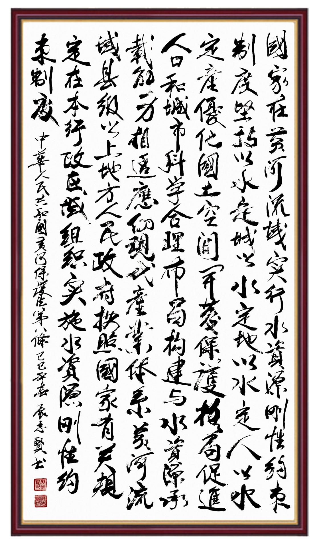黃河寧,天下平。黃河是中華民族的發(fā)源地和搖籃,保護(hù)黃河是事關(guān)中華民族偉大復(fù)興的千秋大計(jì)。《中華人民共和國(guó)黃河保護(hù)法》為推進(jìn)水資源節(jié)約集約利用、保護(hù)傳承弘揚(yáng)黃河文化、推動(dòng)黃河流域生態(tài)保護(hù)和高質(zhì)量發(fā)展提供了有力法治保障。繼書寫《中華人民共和國(guó)民法典》《中華人民共和國(guó)憲法》《中華人民共和國(guó)澳門特別行政區(qū)基本法》《中華人民共和國(guó)香港特別行政區(qū)基本法》《中華人民共和國(guó)國(guó)旗法》《中華人民共和國(guó)國(guó)徽法》《中華人民共和國(guó)國(guó)歌法》《中華人民共和國(guó)法官法》等法律法規(guī)之后,法制日?qǐng)?bào)社聯(lián)合沿黃九?。▍^(qū))司法廳、書法家協(xié)會(huì),將筆端對(duì)準(zhǔn)《中華人民共和國(guó)黃河保護(hù)法》。
