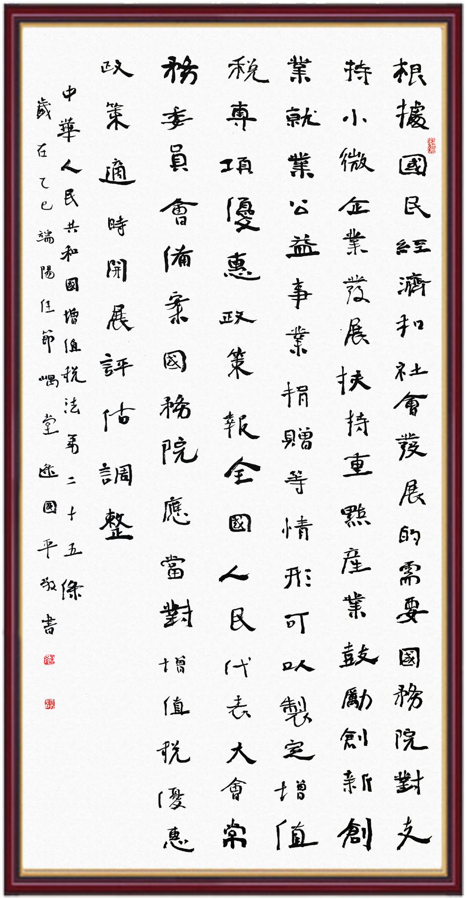 稅收一頭連著國計(jì),一頭連著民生。全面推進(jìn)依法治稅,是全面依法治國基本方略在稅收領(lǐng)域的集中體現(xiàn)?!吨腥A人民共和國增值稅法》將于2026年1月1日起施行,對(duì)全面落實(shí)稅收法定原則、健全有利于高質(zhì)量發(fā)展的增值稅制度、規(guī)范增值稅的征收和繳納、保護(hù)納稅人合法權(quán)益具有重要意義。繼書寫《中華人民共和國民法典》《中華人民共和國憲法》《中華人民共和國國旗法》《中華人民共和國國徽法》《中華人民共和國國歌法》《中華人民共和國法官法》《中華人民共和國黃河保護(hù)法》等法律法規(guī)之后,法制日?qǐng)?bào)社將筆端對(duì)準(zhǔn)《中華人民共和國增值稅法》。