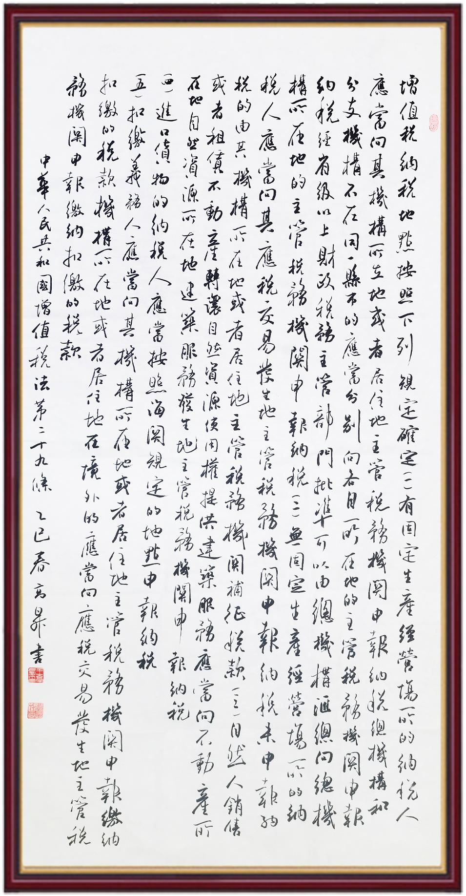 稅收一頭連著國計,一頭連著民生。全面推進依法治稅,是全面依法治國基本方略在稅收領(lǐng)域的集中體現(xiàn)?!吨腥A人民共和國增值稅法》將于2026年1月1日起施行,對全面落實稅收法定原則、健全有利于高質(zhì)量發(fā)展的增值稅制度、規(guī)范增值稅的征收和繳納、保護納稅人合法權(quán)益具有重要意義。繼書寫《中華人民共和國民法典》《中華人民共和國憲法》《中華人民共和國國旗法》《中華人民共和國國徽法》《中華人民共和國國歌法》《中華人民共和國法官法》《中華人民共和國黃河保護法》等法律法規(guī)之后,法制日報社將筆端對準(zhǔn)《中華人民共和國增值稅法》。