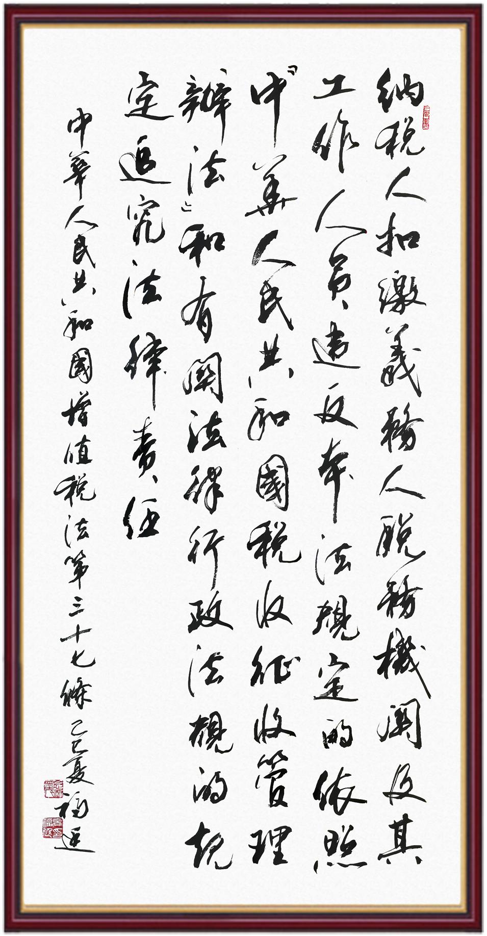 稅收一頭連著國計(jì),一頭連著民生。全面推進(jìn)依法治稅,是全面依法治國基本方略在稅收領(lǐng)域的集中體現(xiàn)。《中華人民共和國增值稅法》將于2026年1月1日起施行,對(duì)全面落實(shí)稅收法定原則、健全有利于高質(zhì)量發(fā)展的增值稅制度、規(guī)范增值稅的征收和繳納、保護(hù)納稅人合法權(quán)益具有重要意義。繼書寫《中華人民共和國民法典》《中華人民共和國憲法》《中華人民共和國國旗法》《中華人民共和國國徽法》《中華人民共和國國歌法》《中華人民共和國法官法》《中華人民共和國黃河保護(hù)法》等法律法規(guī)之后,法制日?qǐng)?bào)社將筆端對(duì)準(zhǔn)《中華人民共和國增值稅法》。