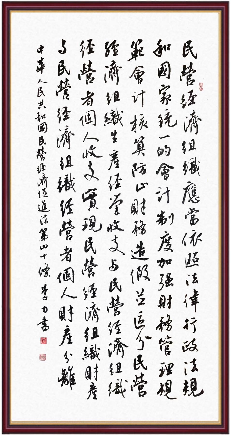 《中華人民共和國民營經(jīng)濟(jì)促進(jìn)法》自今年5月20日起施行。作為我國首部專門關(guān)于民營經(jīng)濟(jì)發(fā)展的基礎(chǔ)性法律,民營經(jīng)濟(jì)促進(jìn)法將支持和保障民營經(jīng)濟(jì)發(fā)展的法律制度融入中國特色社會主義法律體系,具有重大的法治意義,為促進(jìn)民營經(jīng)濟(jì)持續(xù)、健康、高質(zhì)量發(fā)展提供了堅(jiān)實(shí)的法治保障。為更好地學(xué)習(xí)、宣傳、貫徹這部法律,法治日報(bào)社聯(lián)合司法部普法與依法治理局,開展“‘書·法’系列活動(dòng)之書寫《中華人民共和國民營經(jīng)濟(jì)促進(jìn)法》”活動(dòng)。