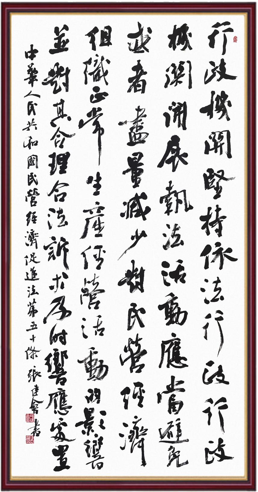 《中華人民共和國(guó)民營(yíng)經(jīng)濟(jì)促進(jìn)法》自今年5月20日起施行。作為我國(guó)首部專門關(guān)于民營(yíng)經(jīng)濟(jì)發(fā)展的基礎(chǔ)性法律,民營(yíng)經(jīng)濟(jì)促進(jìn)法將支持和保障民營(yíng)經(jīng)濟(jì)發(fā)展的法律制度融入中國(guó)特色社會(huì)主義法律體系,具有重大的法治意義,為促進(jìn)民營(yíng)經(jīng)濟(jì)持續(xù)、健康、高質(zhì)量發(fā)展提供了堅(jiān)實(shí)的法治保障。為更好地學(xué)習(xí)、宣傳、貫徹這部法律,法治日?qǐng)?bào)社聯(lián)合司法部普法與依法治理局,開展“‘書·法’系列活動(dòng)之書寫《中華人民共和國(guó)民營(yíng)經(jīng)濟(jì)促進(jìn)法》”活動(dòng)。