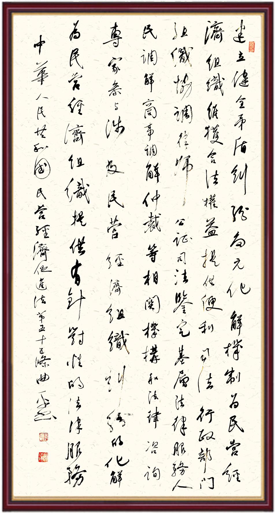 《中華人民共和國民營經(jīng)濟(jì)促進(jìn)法》自今年5月20日起施行。作為我國首部專門關(guān)于民營經(jīng)濟(jì)發(fā)展的基礎(chǔ)性法律,民營經(jīng)濟(jì)促進(jìn)法將支持和保障民營經(jīng)濟(jì)發(fā)展的法律制度融入中國特色社會主義法律體系,具有重大的法治意義,為促進(jìn)民營經(jīng)濟(jì)持續(xù)、健康、高質(zhì)量發(fā)展提供了堅(jiān)實(shí)的法治保障。為更好地學(xué)習(xí)、宣傳、貫徹這部法律,法治日報社聯(lián)合司法部普法與依法治理局,開展“‘書·法’系列活動之書寫《中華人民共和國民營經(jīng)濟(jì)促進(jìn)法》”活動。