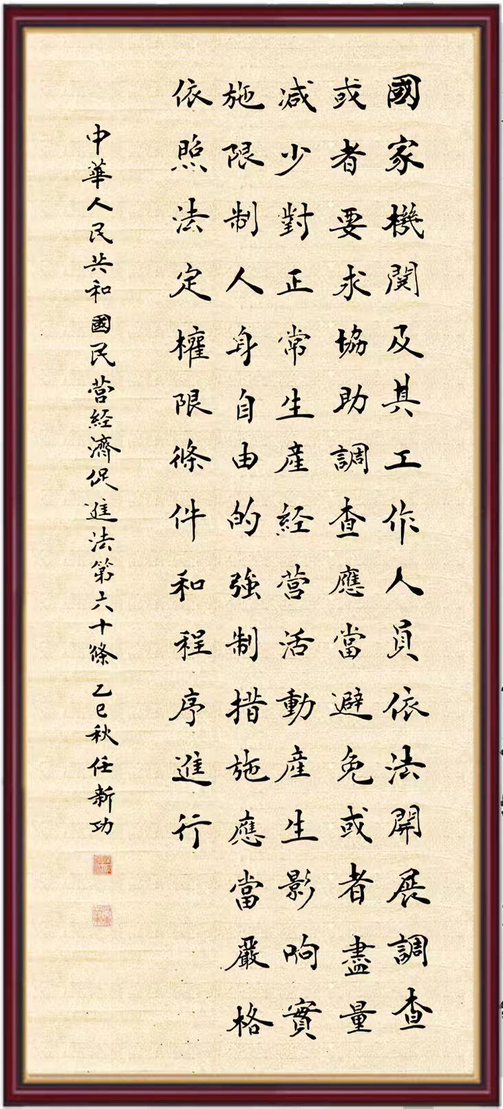 《中華人民共和國民營經(jīng)濟促進法》自今年5月20日起施行。作為我國首部專門關(guān)于民營經(jīng)濟發(fā)展的基礎(chǔ)性法律,民營經(jīng)濟促進法將支持和保障民營經(jīng)濟發(fā)展的法律制度融入中國特色社會主義法律體系,具有重大的法治意義,為促進民營經(jīng)濟持續(xù)、健康、高質(zhì)量發(fā)展提供了堅實的法治保障。為更好地學(xué)習(xí)、宣傳、貫徹這部法律,法治日報社聯(lián)合司法部普法與依法治理局,開展“‘書·法’系列活動之書寫《中華人民共和國民營經(jīng)濟促進法》”活動。