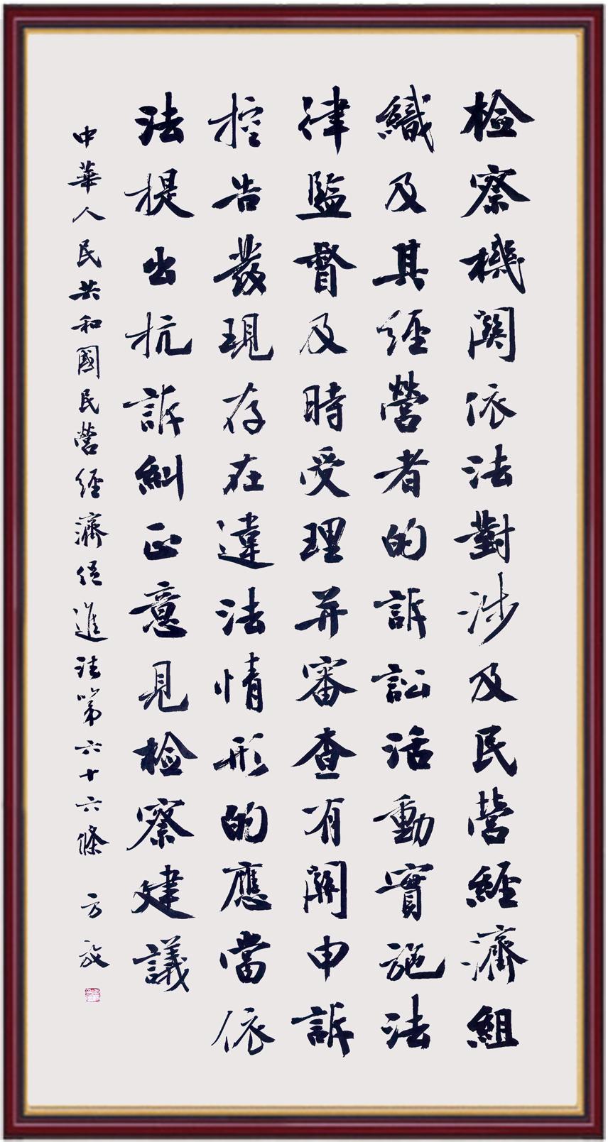《中華人民共和國民營經(jīng)濟(jì)促進(jìn)法》自今年5月20日起施行。作為我國首部專門關(guān)于民營經(jīng)濟(jì)發(fā)展的基礎(chǔ)性法律,民營經(jīng)濟(jì)促進(jìn)法將支持和保障民營經(jīng)濟(jì)發(fā)展的法律制度融入中國特色社會主義法律體系,具有重大的法治意義,為促進(jìn)民營經(jīng)濟(jì)持續(xù)、健康、高質(zhì)量發(fā)展提供了堅實的法治保障。為更好地學(xué)習(xí)、宣傳、貫徹這部法律,法治日報社聯(lián)合司法部普法與依法治理局,開展“‘書·法’系列活動之書寫《中華人民共和國民營經(jīng)濟(jì)促進(jìn)法》”活動。