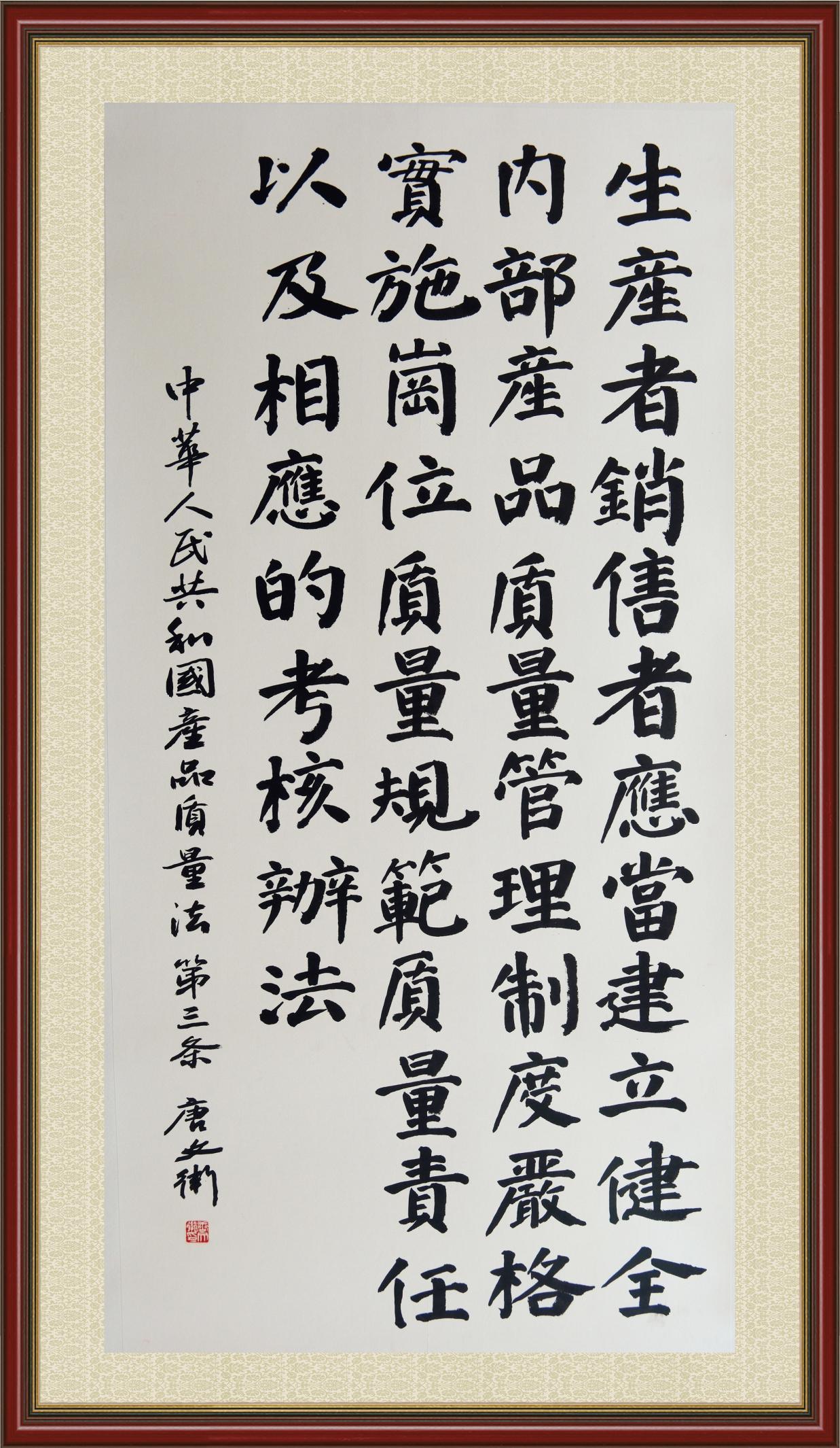 《中華人民共和國(guó)產(chǎn)品質(zhì)量法》自1993年9月1日起開始施行,先后進(jìn)行三次修正。作為產(chǎn)品質(zhì)量領(lǐng)域的基本法律,產(chǎn)品質(zhì)量法對(duì)規(guī)范產(chǎn)品質(zhì)量管理、維護(hù)消費(fèi)者合法權(quán)益、促進(jìn)經(jīng)濟(jì)社會(huì)發(fā)展具有重要意義。為更好地學(xué)習(xí)、宣傳、貫徹這部法律,在國(guó)家市場(chǎng)監(jiān)督管理總局法規(guī)司的支持下,法治日?qǐng)?bào)社開展了“‘書·法’系列活動(dòng)之書寫《中華人民共和國(guó)產(chǎn)品質(zhì)量法》”活動(dòng)。