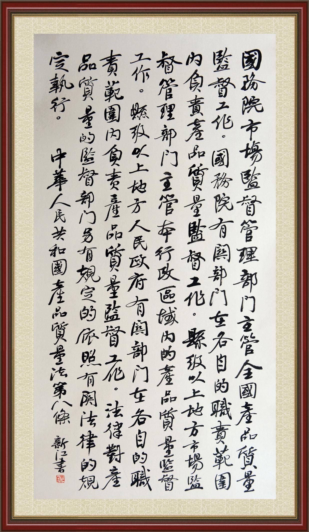 《中華人民共和國(guó)產(chǎn)品質(zhì)量法》自1993年9月1日起開(kāi)始施行,先后進(jìn)行三次修正。作為產(chǎn)品質(zhì)量領(lǐng)域的基本法律,產(chǎn)品質(zhì)量法對(duì)規(guī)范產(chǎn)品質(zhì)量管理、維護(hù)消費(fèi)者合法權(quán)益、促進(jìn)經(jīng)濟(jì)社會(huì)發(fā)展具有重要意義。為更好地學(xué)習(xí)、宣傳、貫徹這部法律,在國(guó)家市場(chǎng)監(jiān)督管理總局法規(guī)司的支持下,法治日?qǐng)?bào)社開(kāi)展了“‘書·法’系列活動(dòng)之書寫《中華人民共和國(guó)產(chǎn)品質(zhì)量法》”活動(dòng)。