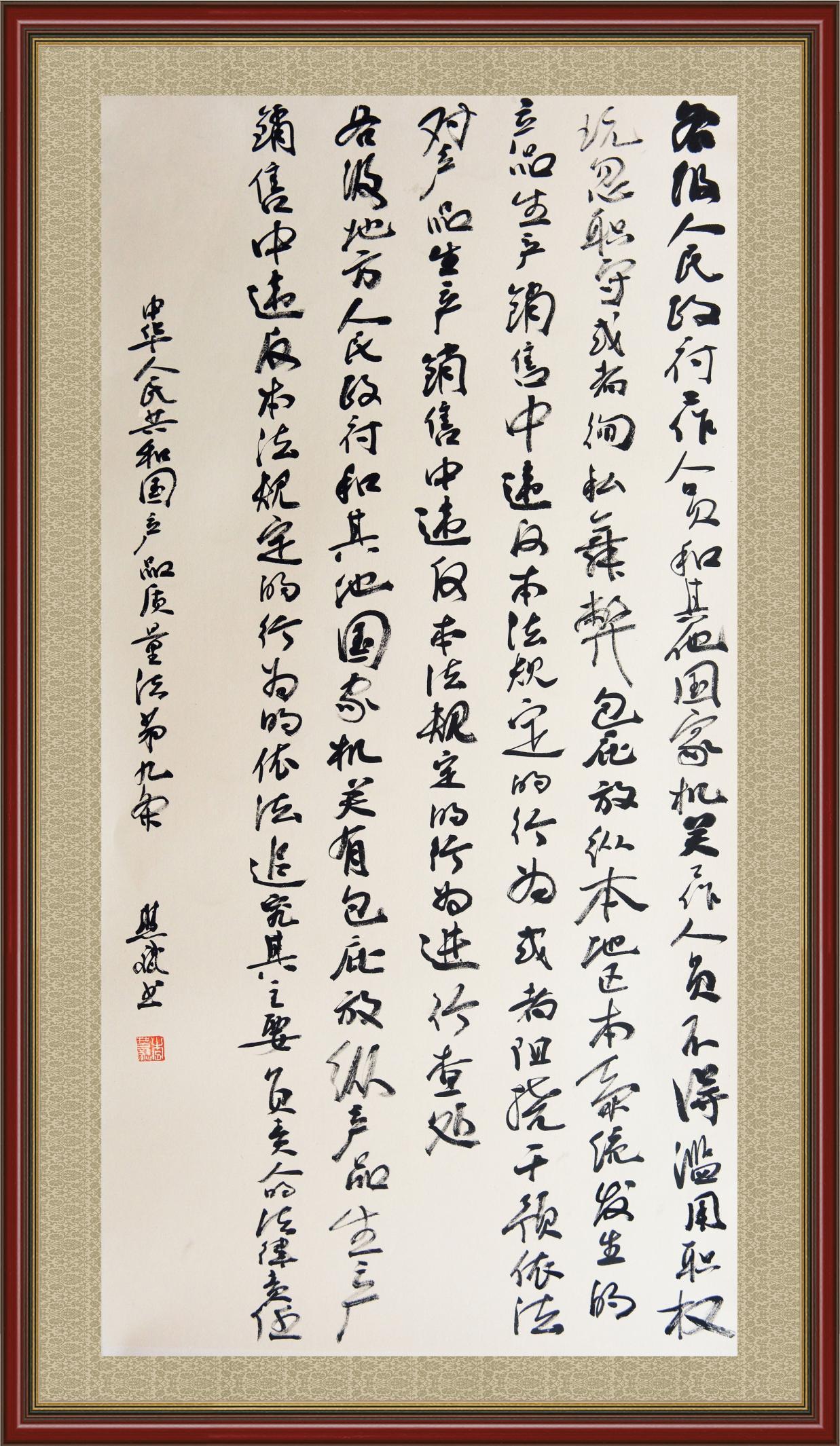 《中華人民共和國產品質量法》自1993年9月1日起開始施行,先后進行三次修正。作為產品質量領域的基本法律,產品質量法對規(guī)范產品質量管理、維護消費者合法權益、促進經濟社會發(fā)展具有重要意義。為更好地學習、宣傳、貫徹這部法律,在國家市場監(jiān)督管理總局法規(guī)司的支持下,法治日報社開展了“‘書·法’系列活動之書寫《中華人民共和國產品質量法》”活動。
