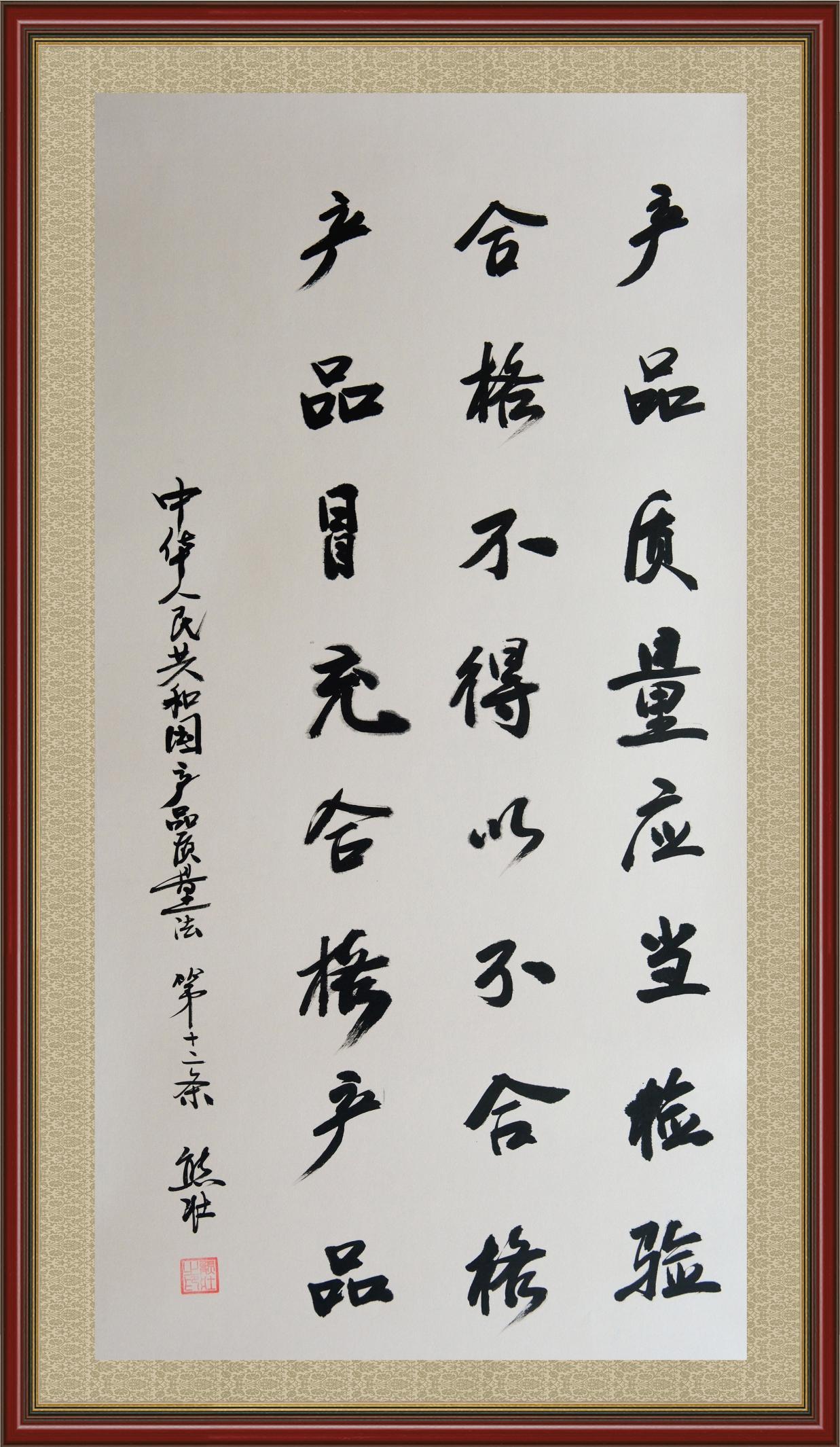 《中華人民共和國產(chǎn)品質(zhì)量法》自1993年9月1日起開始施行,先后進(jìn)行三次修正。作為產(chǎn)品質(zhì)量領(lǐng)域的基本法律,產(chǎn)品質(zhì)量法對規(guī)范產(chǎn)品質(zhì)量管理、維護(hù)消費(fèi)者合法權(quán)益、促進(jìn)經(jīng)濟(jì)社會發(fā)展具有重要意義。為更好地學(xué)習(xí)、宣傳、貫徹這部法律,在國家市場監(jiān)督管理總局法規(guī)司的支持下,法治日報社開展了“‘書·法’系列活動之書寫《中華人民共和國產(chǎn)品質(zhì)量法》”活動。