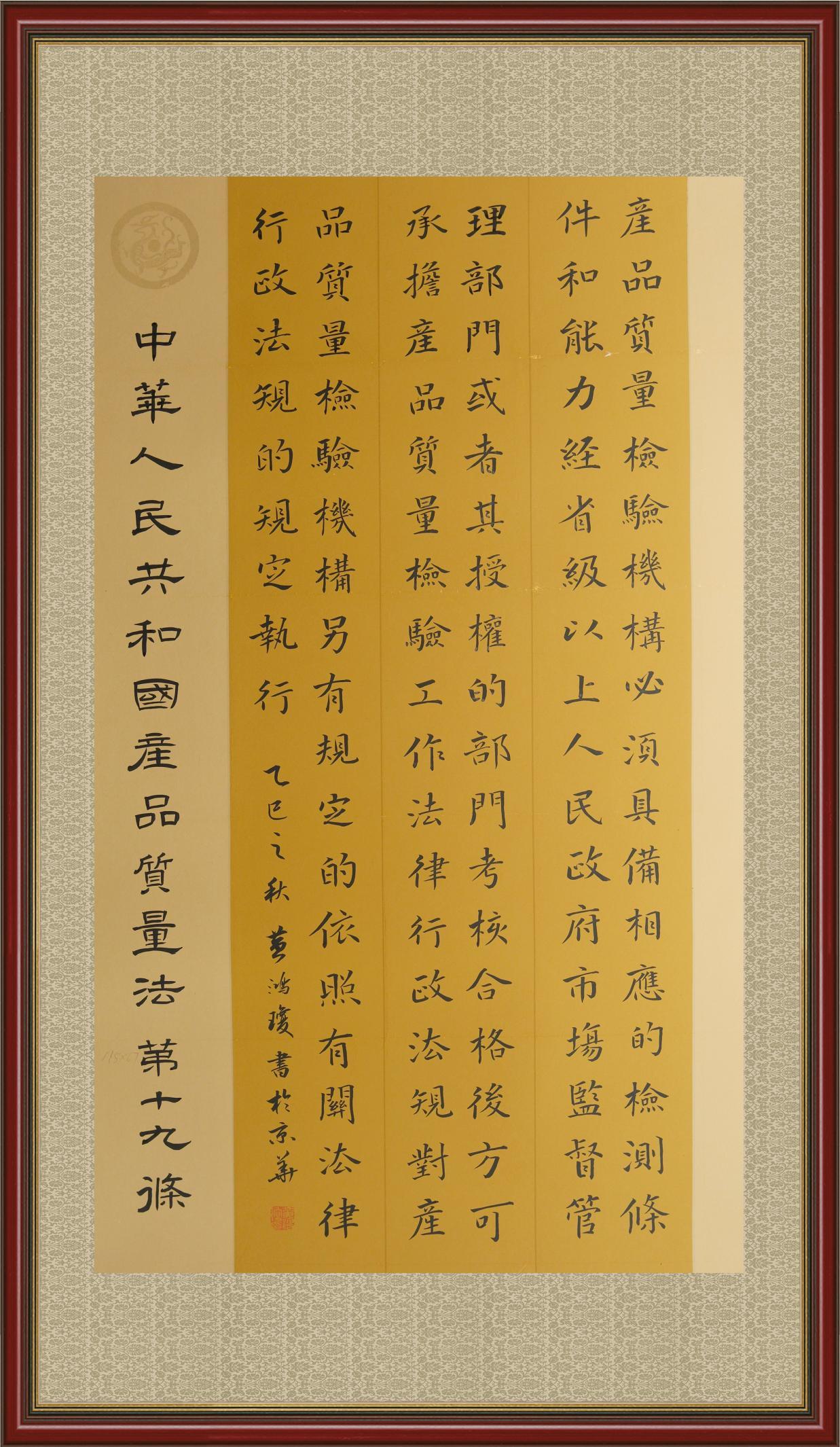 《中華人民共和國產(chǎn)品質(zhì)量法》自1993年9月1日起開始施行,先后進(jìn)行三次修正。作為產(chǎn)品質(zhì)量領(lǐng)域的基本法律,產(chǎn)品質(zhì)量法對規(guī)范產(chǎn)品質(zhì)量管理、維護(hù)消費者合法權(quán)益、促進(jìn)經(jīng)濟社會發(fā)展具有重要意義。為更好地學(xué)習(xí)、宣傳、貫徹這部法律,在國家市場監(jiān)督管理總局法規(guī)司的支持下,法治日報社開展了“‘書·法’系列活動之書寫《中華人民共和國產(chǎn)品質(zhì)量法》”活動。