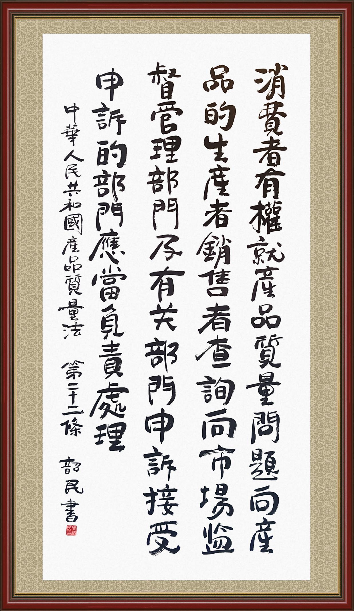 《中華人民共和國產(chǎn)品質(zhì)量法》自1993年9月1日起開始施行,先后進(jìn)行三次修正。作為產(chǎn)品質(zhì)量領(lǐng)域的基本法律,產(chǎn)品質(zhì)量法對規(guī)范產(chǎn)品質(zhì)量管理、維護(hù)消費者合法權(quán)益、促進(jìn)經(jīng)濟社會發(fā)展具有重要意義。為更好地學(xué)習(xí)、宣傳、貫徹這部法律,在國家市場監(jiān)督管理總局法規(guī)司的支持下,法治日報社開展了“‘書·法’系列活動之書寫《中華人民共和國產(chǎn)品質(zhì)量法》”活動。