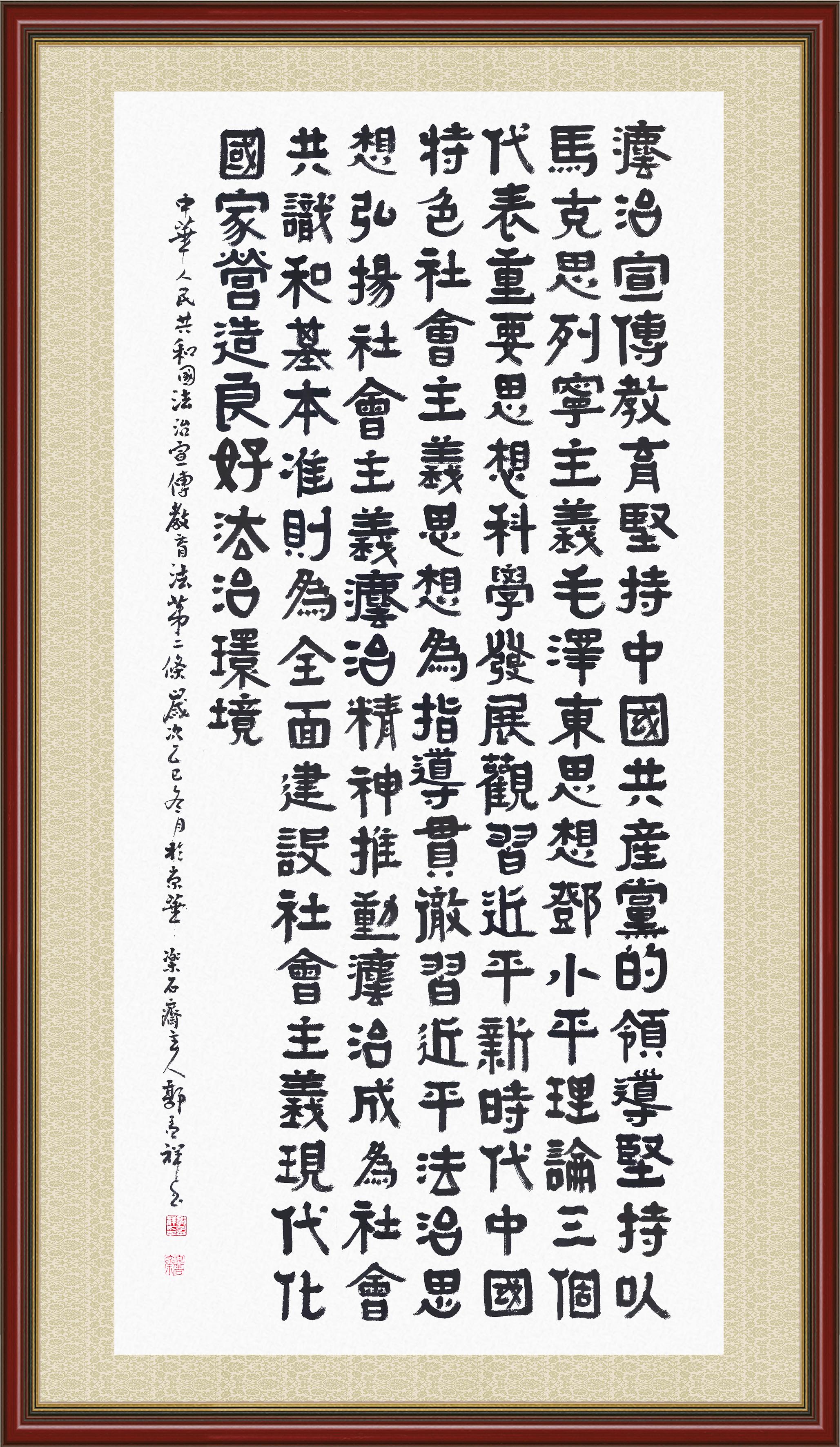 2020年7月11日,由法治日?qǐng)?bào)社主辦的“書·法”系列活動(dòng)正式啟動(dòng),先后書寫《中華人民共和國(guó)民法典》《中華人民共和國(guó)憲法》《中華人民共和國(guó)民營(yíng)經(jīng)濟(jì)促進(jìn)法》等21部法律法規(guī)。