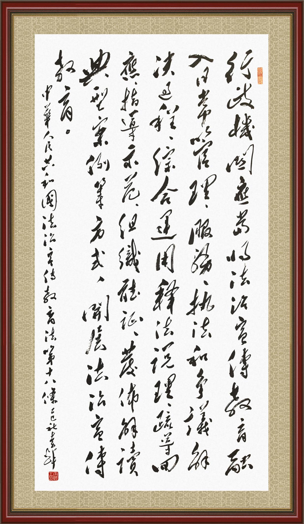 2020年7月11日,由法治日報社主辦的“書·法”系列活動正式啟動,先后書寫《中華人民共和國民法典》《中華人民共和國憲法》《中華人民共和國民營經(jīng)濟促進法》等21部法律法規(guī)。