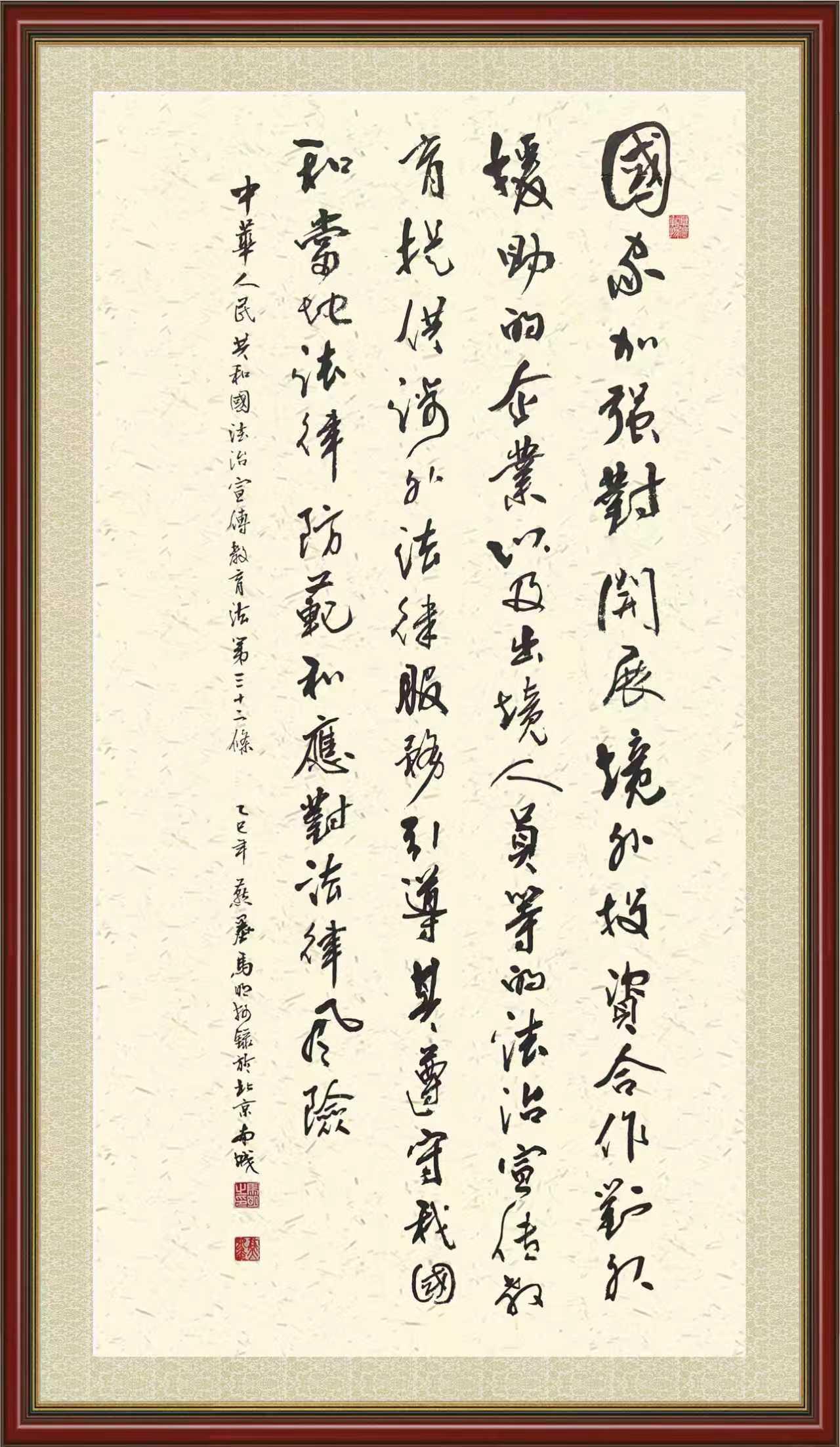 2020年7月11日,由法治日報社主辦的“書·法”系列活動正式啟動,先后書寫《中華人民共和國民法典》《中華人民共和國憲法》《中華人民共和國民營經(jīng)濟促進法》等21部法律法規(guī)。