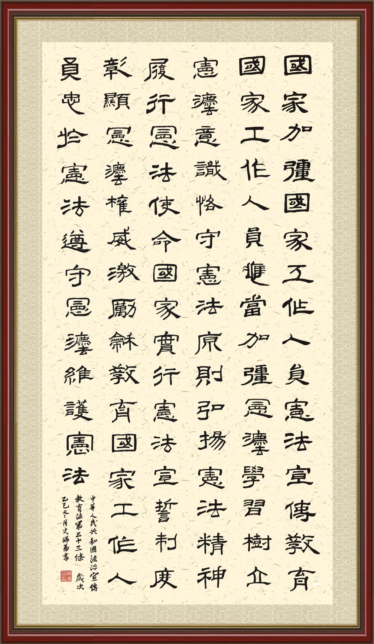 《中華人民共和國法治宣傳教育法》自2025年11月1日起開始施行。法治宣傳教育是全面依法治國的長期基礎(chǔ)性工作。法治宣傳教育法對提升全民法治素養(yǎng)和社會治理法治化水平、推動建設(shè)更高水平的社會主義法治國家具有重要意義。為更好地學習、宣傳、貫徹這部法律,法治日報社聯(lián)合司法部普法與依法治理局,開展了“‘書·法’系列活動之書寫《中華人民共和國法治宣傳教育法》”活動。