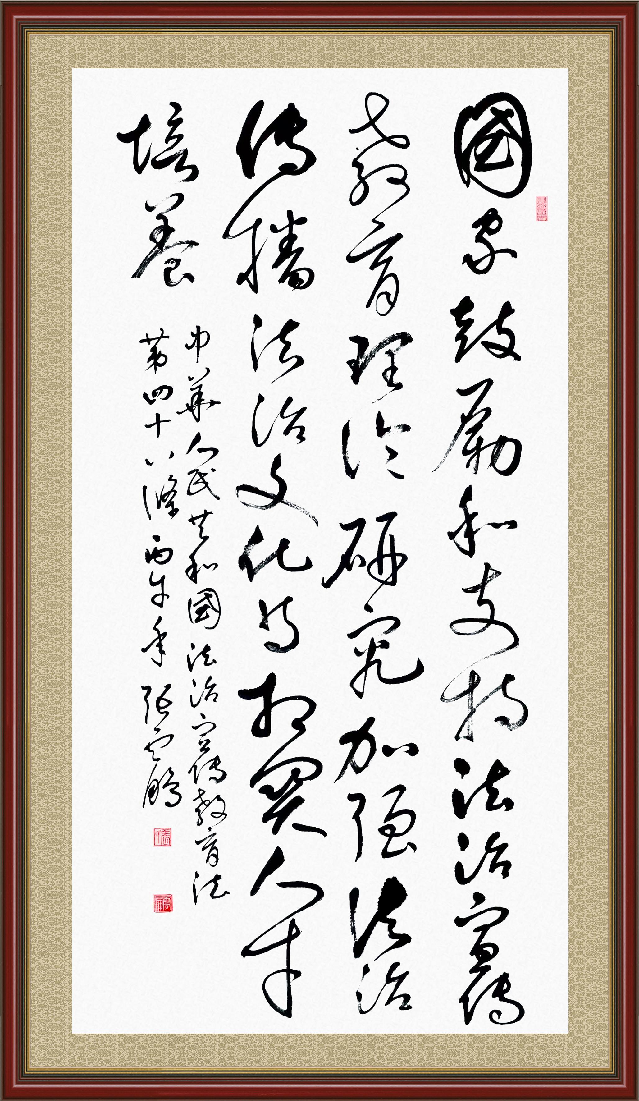 2020年7月11日,由法治日報(bào)社主辦的“書·法”系列活動(dòng)正式啟動(dòng),先后書寫《中華人民共和國民法典》《中華人民共和國憲法》《中華人民共和國民營經(jīng)濟(jì)促進(jìn)法》等21部法律法規(guī)。