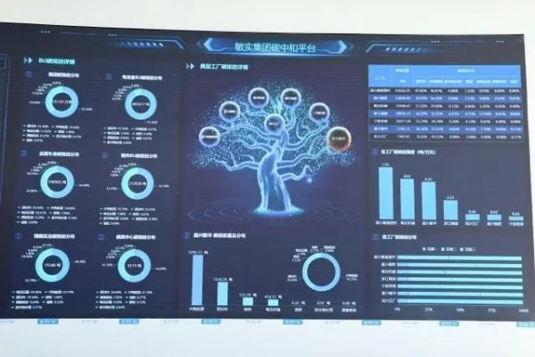 在敏實(shí)集團(tuán)展廳的一塊大屏上,實(shí)時(shí)顯示著整個(gè)廠區(qū)的用能排碳、機(jī)器狀態(tài)、在崗員工等方方面面的生產(chǎn)數(shù)據(jù),甚至連食堂近半年最受歡迎的菜品排行都包含其中。