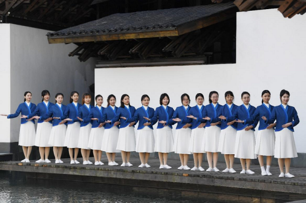 2022年11月6日,烏鎮(zhèn)互聯(lián)網(wǎng)國際會(huì)展中心,“小梧桐”志愿者拍攝合影