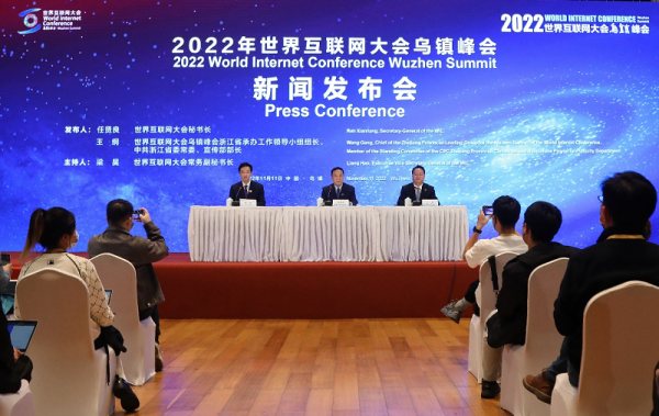 2022年11月11日,2022年世界互聯(lián)網(wǎng)大會(huì)烏鎮(zhèn)峰會(huì)新聞發(fā)布會(huì)現(xiàn)場(chǎng)