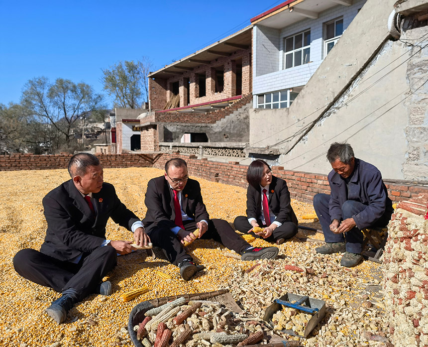 王世廣(左一)與同事入村進行案件回訪。魏振敏攝