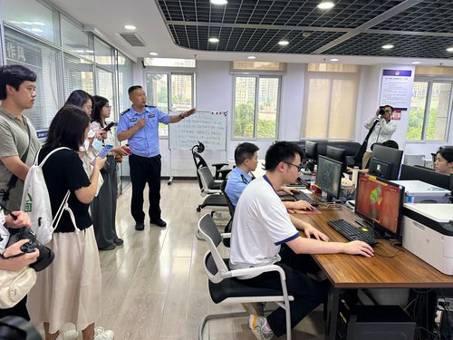 涪陵區(qū)公安局圖偵支隊(duì)支隊(duì)長徐浩向采訪團(tuán)介紹數(shù)字化警務(wù)改革工作。人民政協(xié)網(wǎng)記者王慧文 攝
