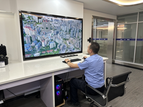 涪陵區(qū)公安局警航飛控中心開展全區(qū)三維圖像建模,助力推進(jìn)警用地理基礎(chǔ)信息三維影像化。人民政協(xié)網(wǎng)記者王慧文 攝