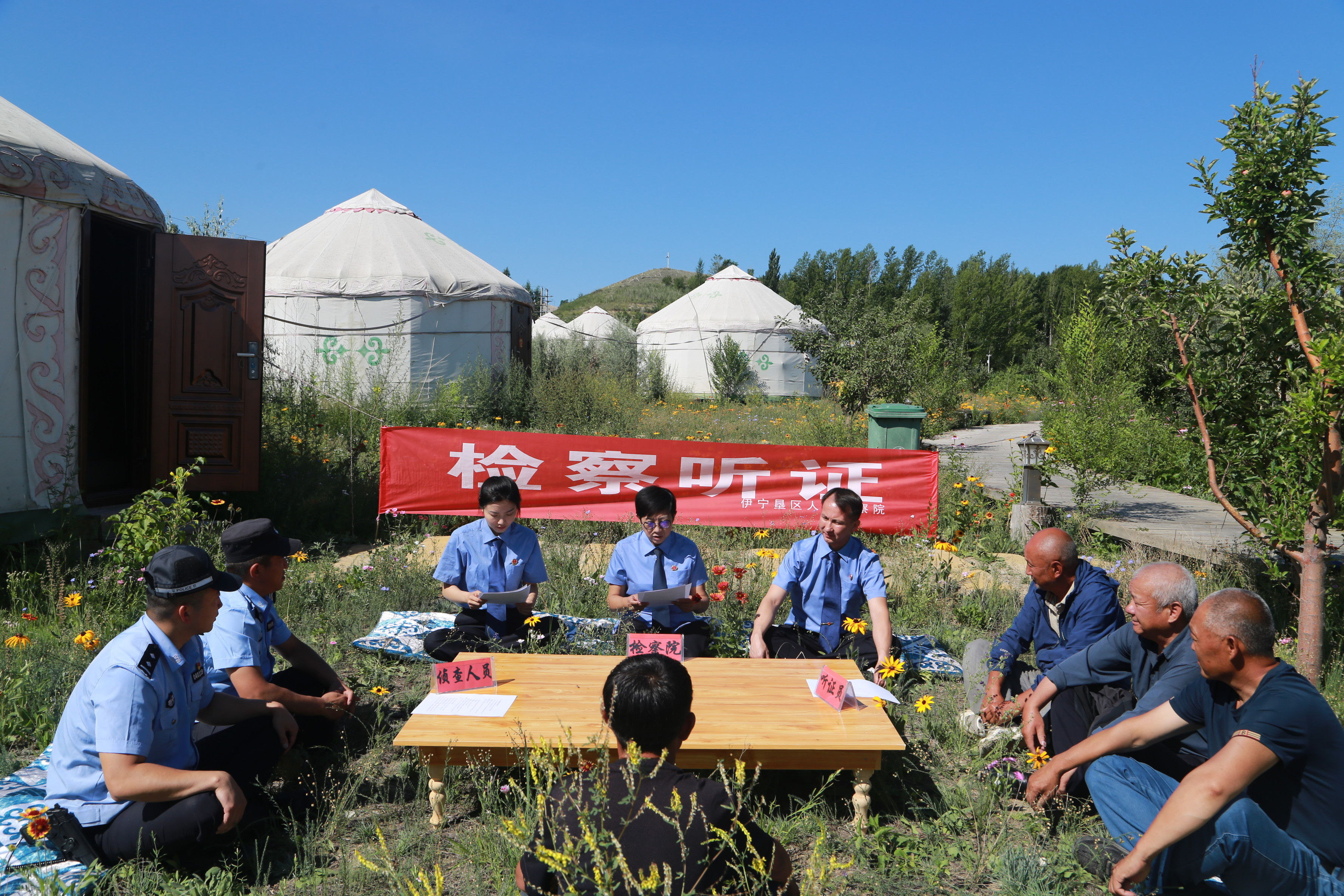 7月7日上午,在七十八團(tuán)綠草如茵的牧場(chǎng)上,一場(chǎng)由伊寧墾區(qū)檢察院組織的“模擬不起訴案件公開聽證會(huì)”正如期舉行......
