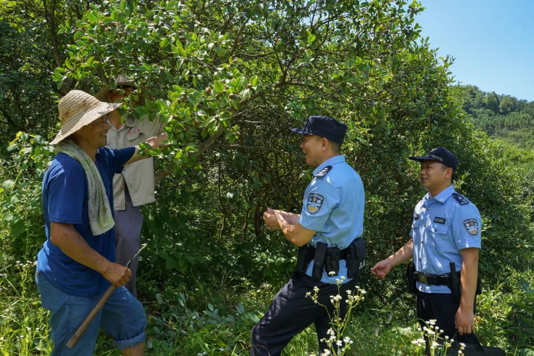 ▲信陽(yáng)市公安局民警深入茶園,調(diào)查走訪轄區(qū)群眾,排查化解矛盾糾紛。