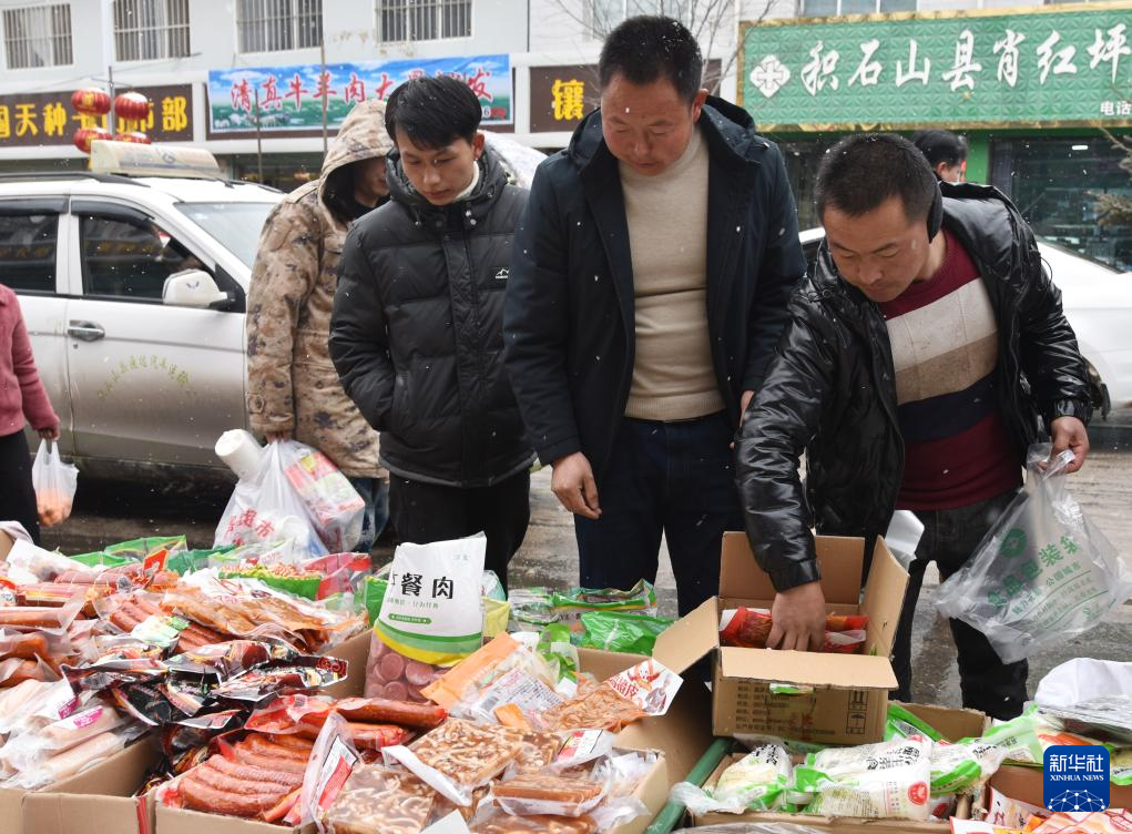 2月6日,人們在甘肅省臨夏州積石山縣石塬鎮(zhèn)肖紅坪村年俗集市選購年貨。