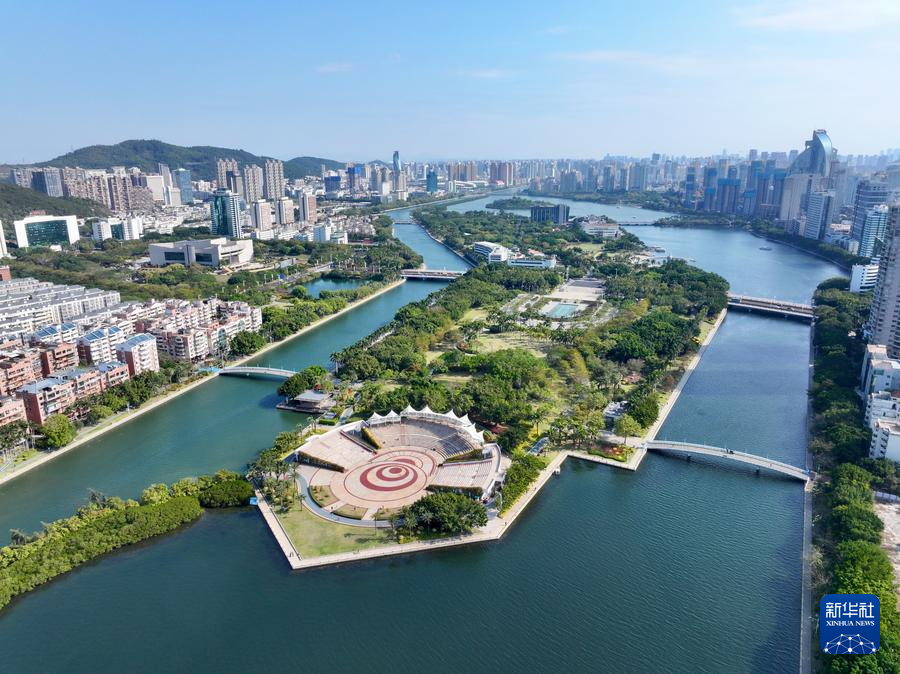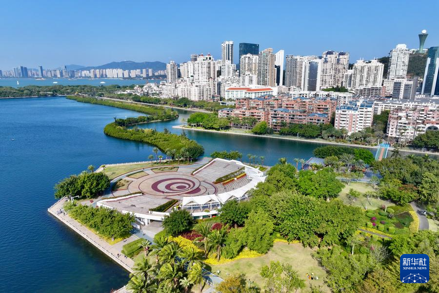 這是1月24日拍攝的廈門筼筜湖白鷺洲公園及周邊城市景觀(無(wú)人機(jī)照片)。新華社記者 姜克紅 攝
