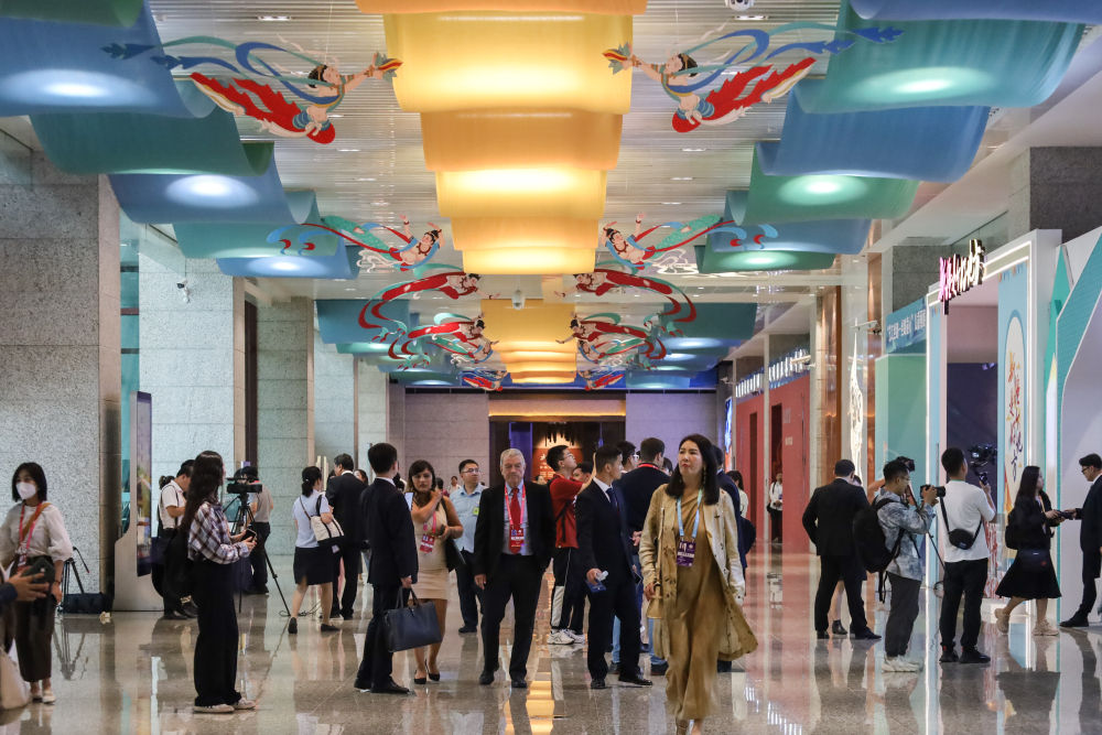 2023年9月6日,與會嘉賓在第六屆絲綢之路(敦煌)國際文化博覽會上參觀。新華社記者 馬希平 攝