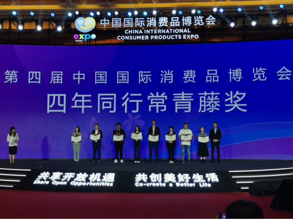 截至今年,中國(guó)國(guó)際消費(fèi)品博覽會(huì)(以下簡(jiǎn)稱“消博會(huì)”)已成功舉辦四屆,給眾多國(guó)內(nèi)外展商留下深刻印象,越來(lái)越多的新朋友成為消博老友,持續(xù)多年參展,共享開放機(jī)遇。4月18日,第四屆消博會(huì)為中國(guó)銀行、博柏利Burberry、復(fù)星集團(tuán)、愛丁頓洋酒、愛爾蘭國(guó)家館、傲勝、愛樂(lè)活跨境免稅健康商城等42家連續(xù)參展的贊助商、參展商代表頒發(fā)“四年同行常青藤獎(jiǎng)”。
