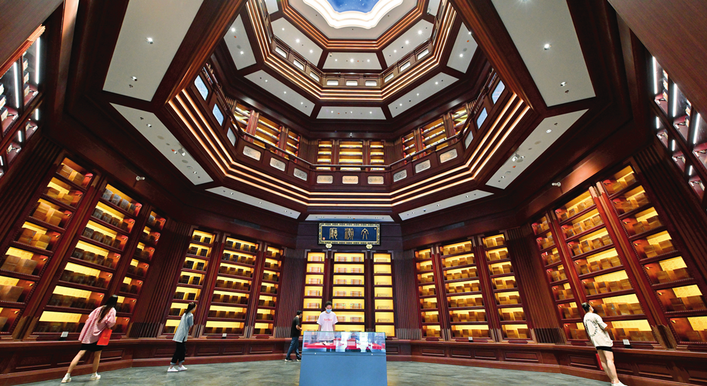 觀眾在位于北京的中國國家版本館中央總館文瀚廳內(nèi)參觀(2022年7月30日攝)李鑫攝 / 本刊