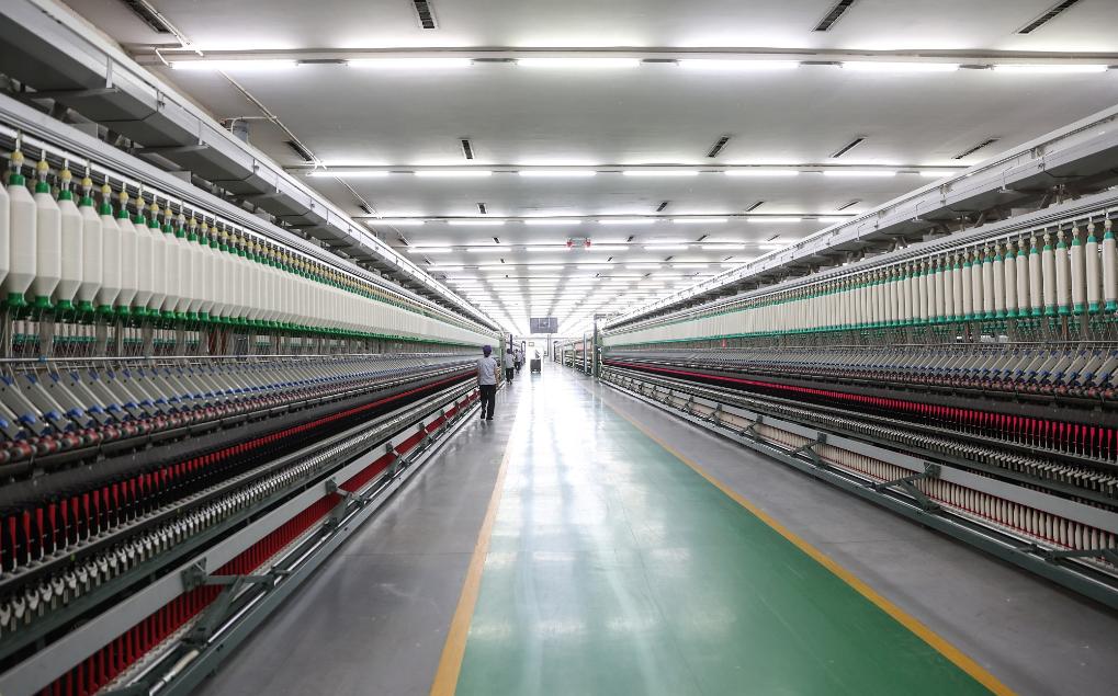 圖為無錫一棉紡織集團(tuán)有限公司的特高支緊密紡智能制造車間。新華社記者 楊磊 攝