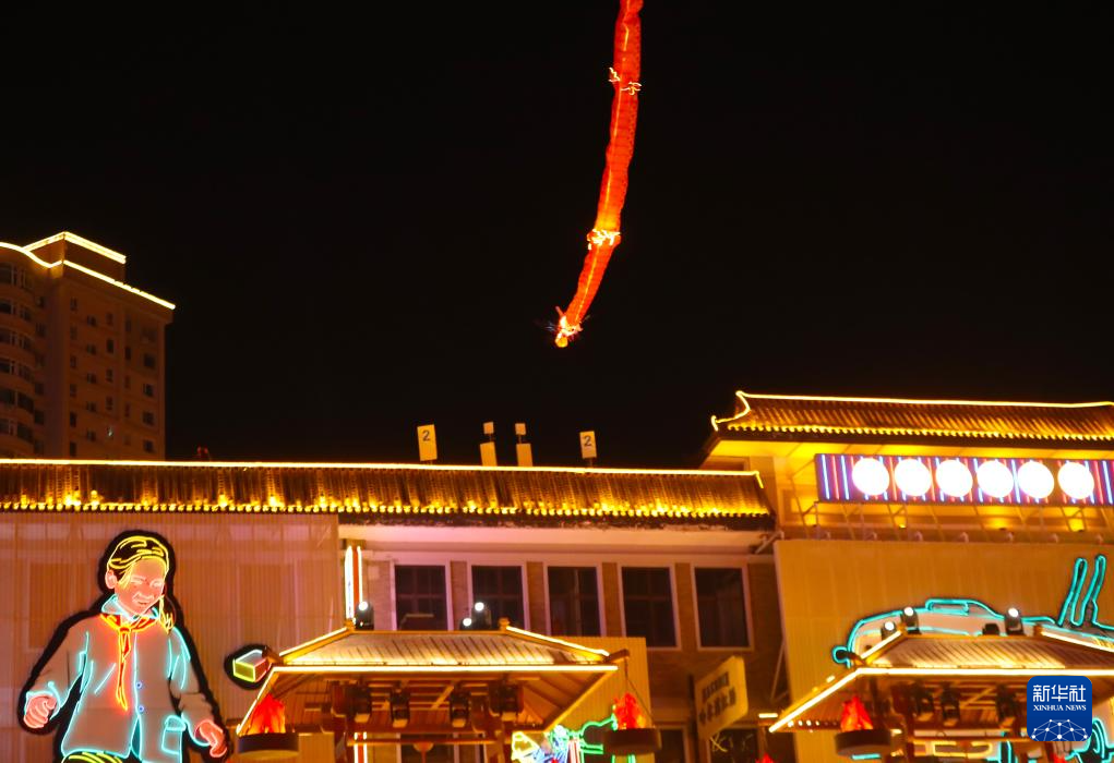 在沈陽(yáng)老北市景區(qū)拍攝的“龍鳳呈祥”演藝場(chǎng)景(2月10日攝)。新華社記者 楊青 攝