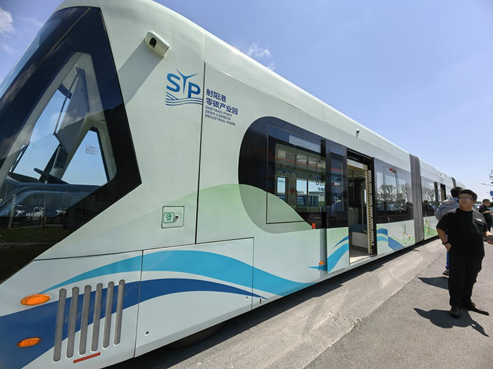 碧海藍(lán)天,迎風(fēng)而行的是零碳巴士,車頂光伏、綠點(diǎn)充能、電池儲能等方式讓車輛平穩(wěn)行駛,而車載的各類傳感器識別路面虛擬軌道線路,精準(zhǔn)控制列車行駛在既定“虛擬軌道”上,實(shí)行智能化運(yùn)行。
