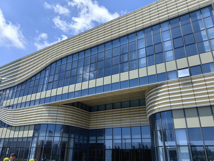 “這面光伏幕墻年發(fā)電量在11萬度左右,相當(dāng)于100戶家庭的年耗電總量?!苯K省射陽港經(jīng)濟(jì)開發(fā)區(qū)黨工委書記陳雙喜介紹。