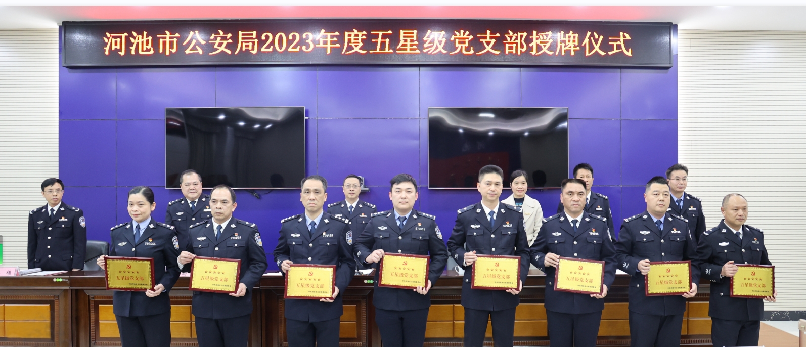 圖為河池市公安局組織開展“五星黨支部”授牌儀式。