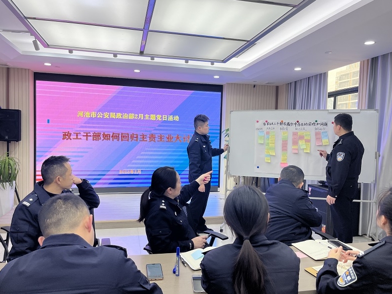 圖為河池市公安局政治部黨支部開展主題黨日活動。