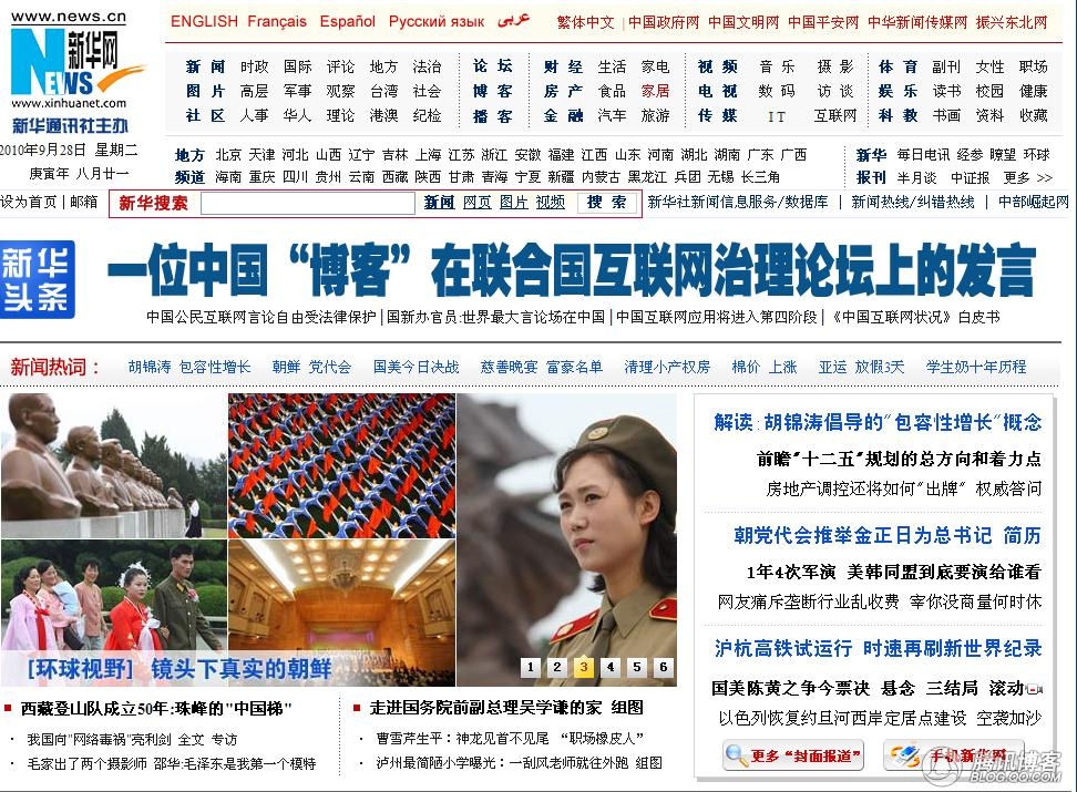 2010年9月28日,新華網(wǎng)在首頁頭條推出《一位中國博客在聯(lián)合國互聯(lián)網(wǎng)治理論壇上的發(fā)言》專題。
