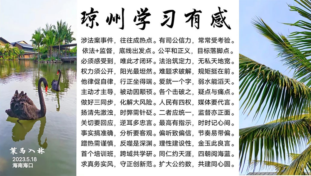 2017年12月29日,參加2017年度政法新媒體峰會(huì),發(fā)言提出:用服務(wù)、窗口、陷阱、同步、供給五個(gè)關(guān)鍵詞,以黨的十九大精神指引政法新媒體建設(shè)、運(yùn)用和規(guī)范工作,推動(dòng)政法新媒體進(jìn)一步提升服務(wù)力,打造法治中國(guó)建設(shè)、平安中國(guó)建設(shè)重要窗口,深入落實(shí)政法工作“三同步”要求,進(jìn)一步提升執(zhí)法司法公信力,營(yíng)造良好政法輿論生態(tài)和社會(huì)環(huán)境,為推進(jìn)全面依法治國(guó),實(shí)現(xiàn)人民群眾對(duì)民主、法治、公平、正義、安全、環(huán)境等美好生活需求作出新的貢獻(xiàn)。