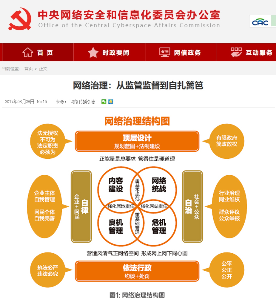 中央網(wǎng)信辦官網(wǎng)轉(zhuǎn)載《網(wǎng)絡(luò)治理:從監(jiān)管監(jiān)督到自扎籬笆》,“網(wǎng)絡(luò)治理結(jié)構(gòu)圖”為本人設(shè)計(jì)